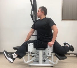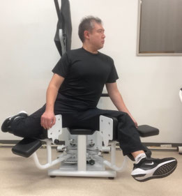 ①股関節の筋肉を伸ばすストレッチマシン「アダクター」